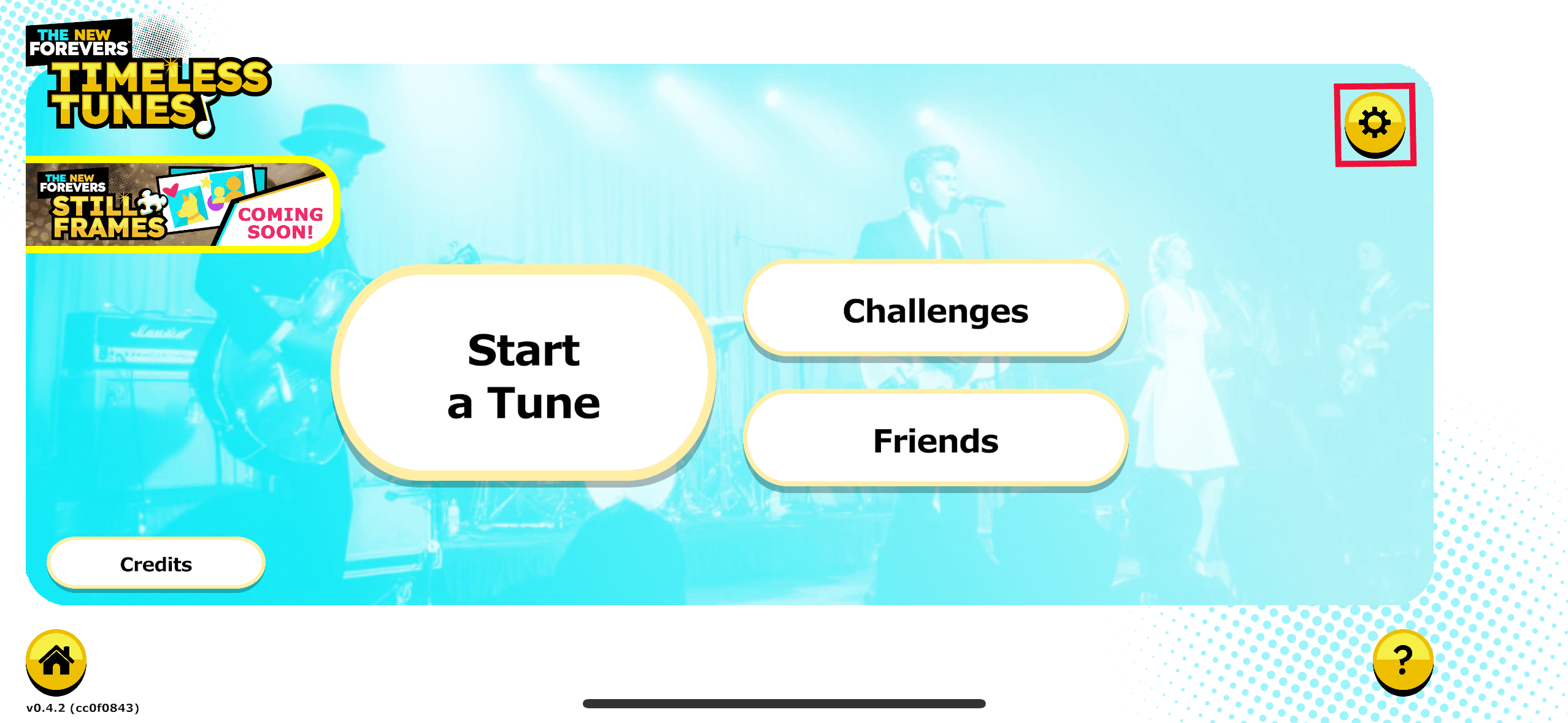 The "Settings" button is the gear icon in the upper right corner of the home screen.